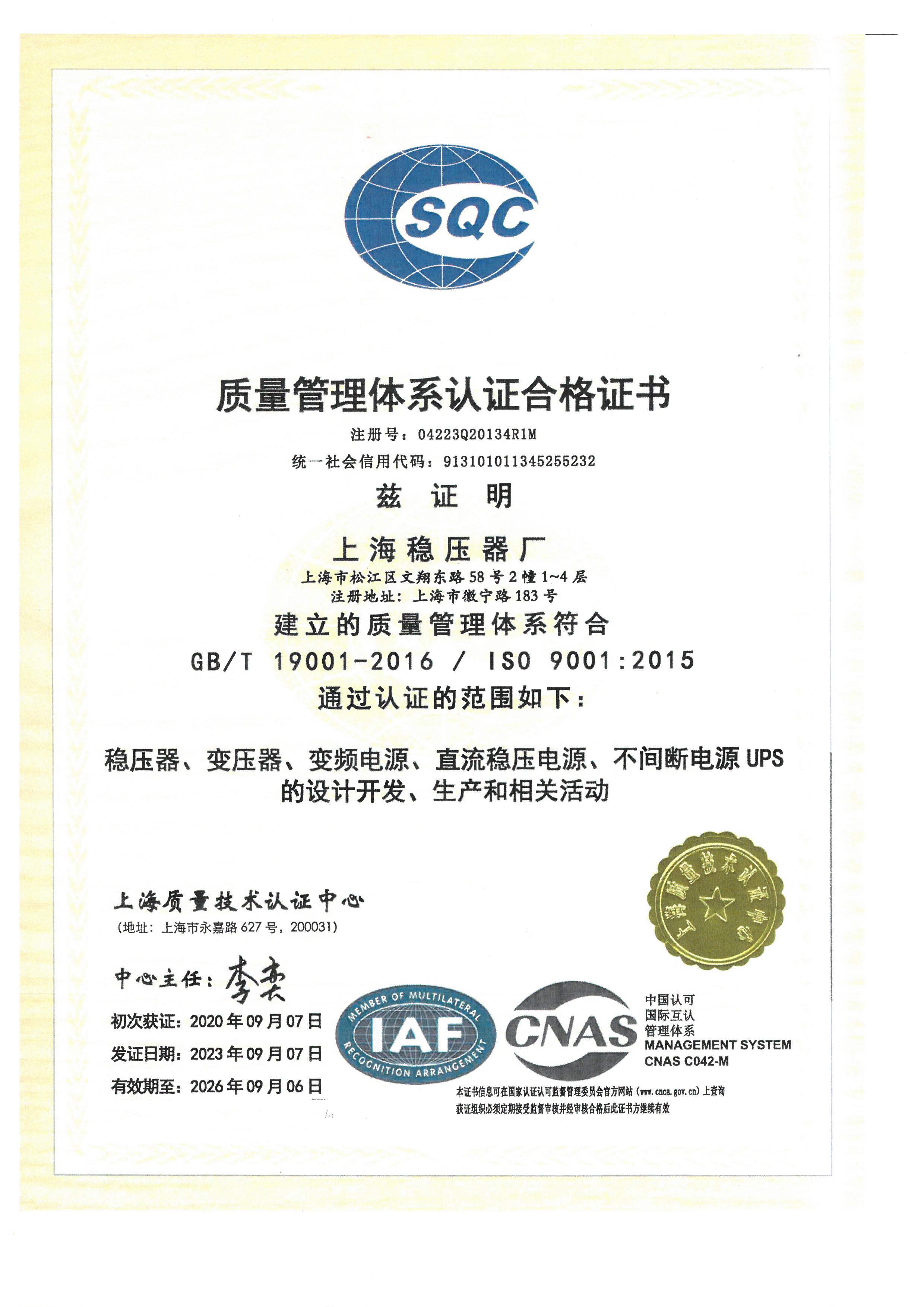 質量管理體系認證證書