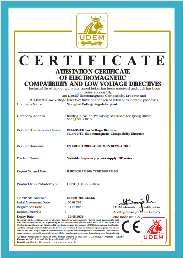 CE certificate for variable frequency power supply