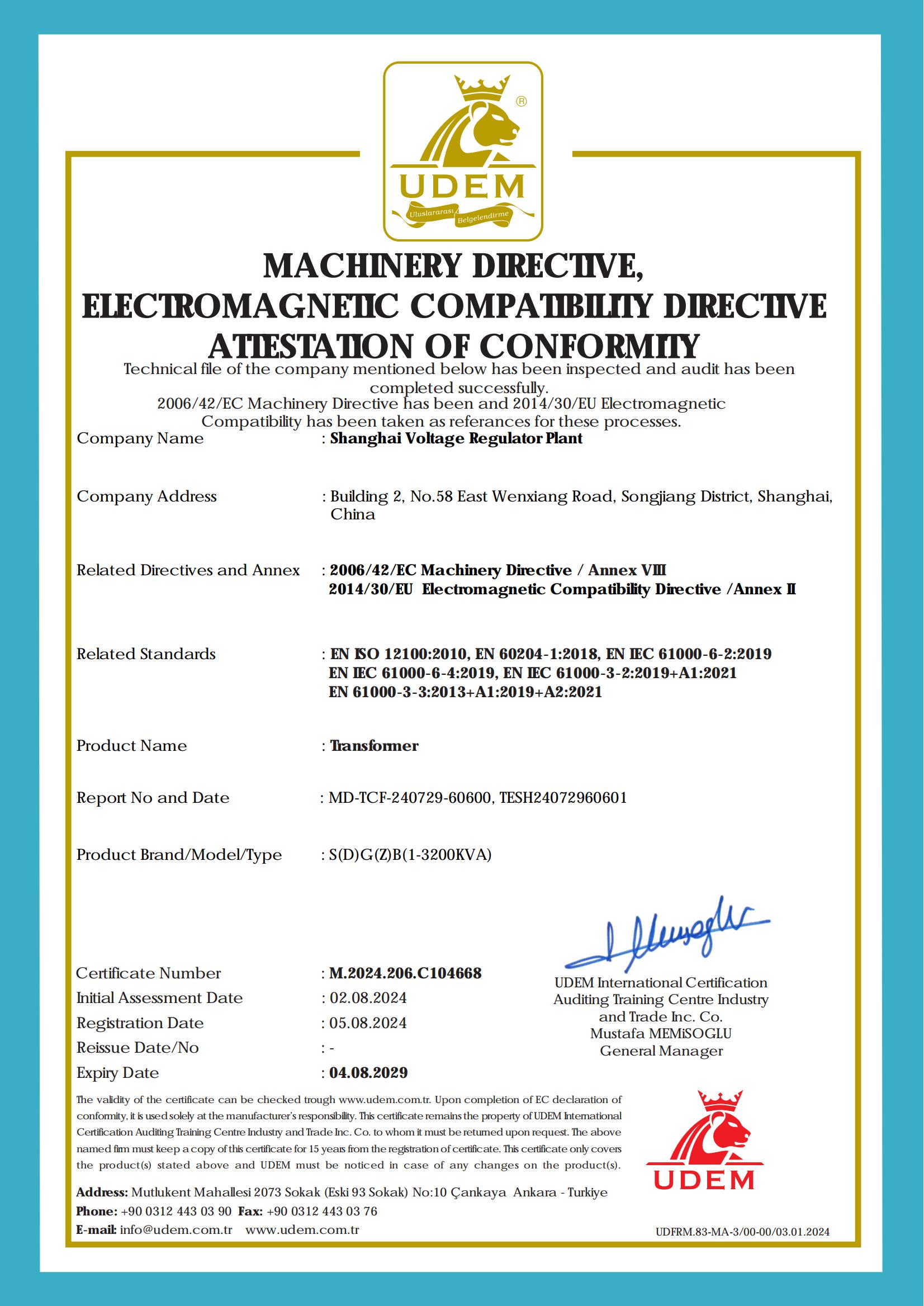 CE certificate for voltage regulator