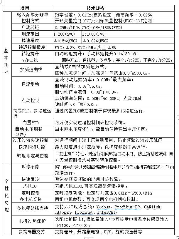本系列變頻器是一款通用高性能電流矢量變頻器主要用于控制和調節??三相交流異步電機的速度和轉矩。采用高性能的矢量控制技術低速高轉矩??輸出,具有良好的動態特性、超強的過載能力,性能穩定,保護功能強大,?人機界面簡潔、操作簡易。其廣泛應用于工業領域、制造業、軌道交通、能源與動力行業、造紙、拉絲、機床、包裝、食品、?風機、水泵及各種自動化生產設備的驅動。