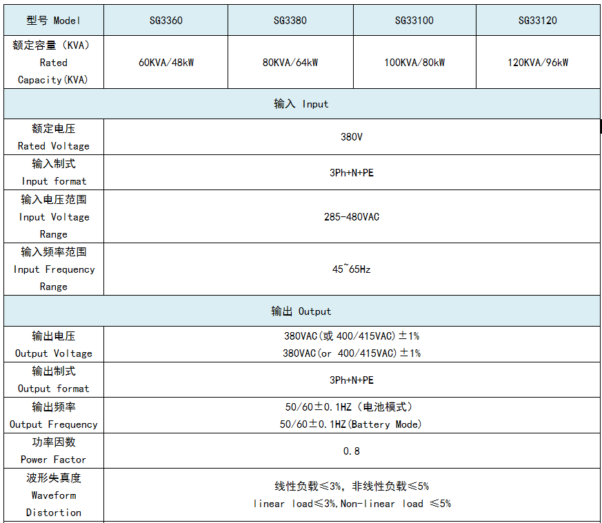 ? ? ? ? 60-400KVA系列UPS主輸入電源和旁路電源可分離,可分別將兩路不同的市電接入UPS以提高輸出電源供電的可靠性。雙變換在線式拓?fù)浣Y(jié)構(gòu)設(shè)計(jì),UPS的輸出為純凈正弦波,使UPS對用戶設(shè)備提供更為完美的保護(hù).